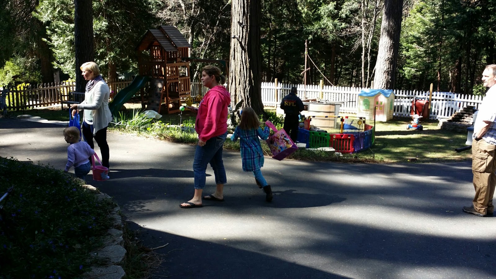 There is Summer in the blue dress running quick to pick up her eggs. Unfortunately, she started picking up the eggs and shaking them. If they made a sound she kept them, if not she dropped them on the ground. Little did she know the eggs that didn't make a sound had a prize slip in them to pick out a prize. Little stinker dropped all of those eggs and the hard boiled ones. Her sister Alyssa gave her one of her prize slips so she could pick out a prize. Hopefully she learned her lesson.